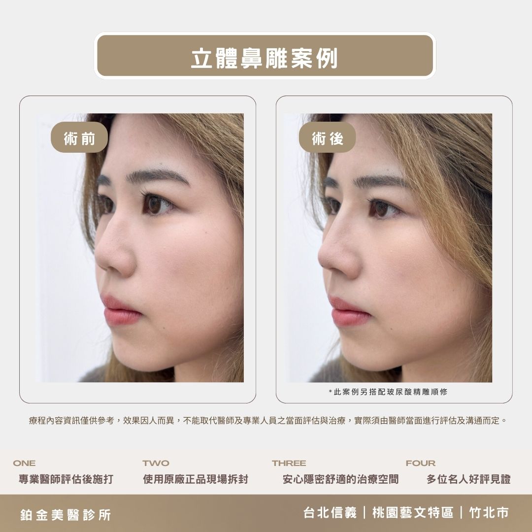 很多人來諮詢時都會說: 「我想要鼻子再精緻一點。」鉑金立體鼻雕療程